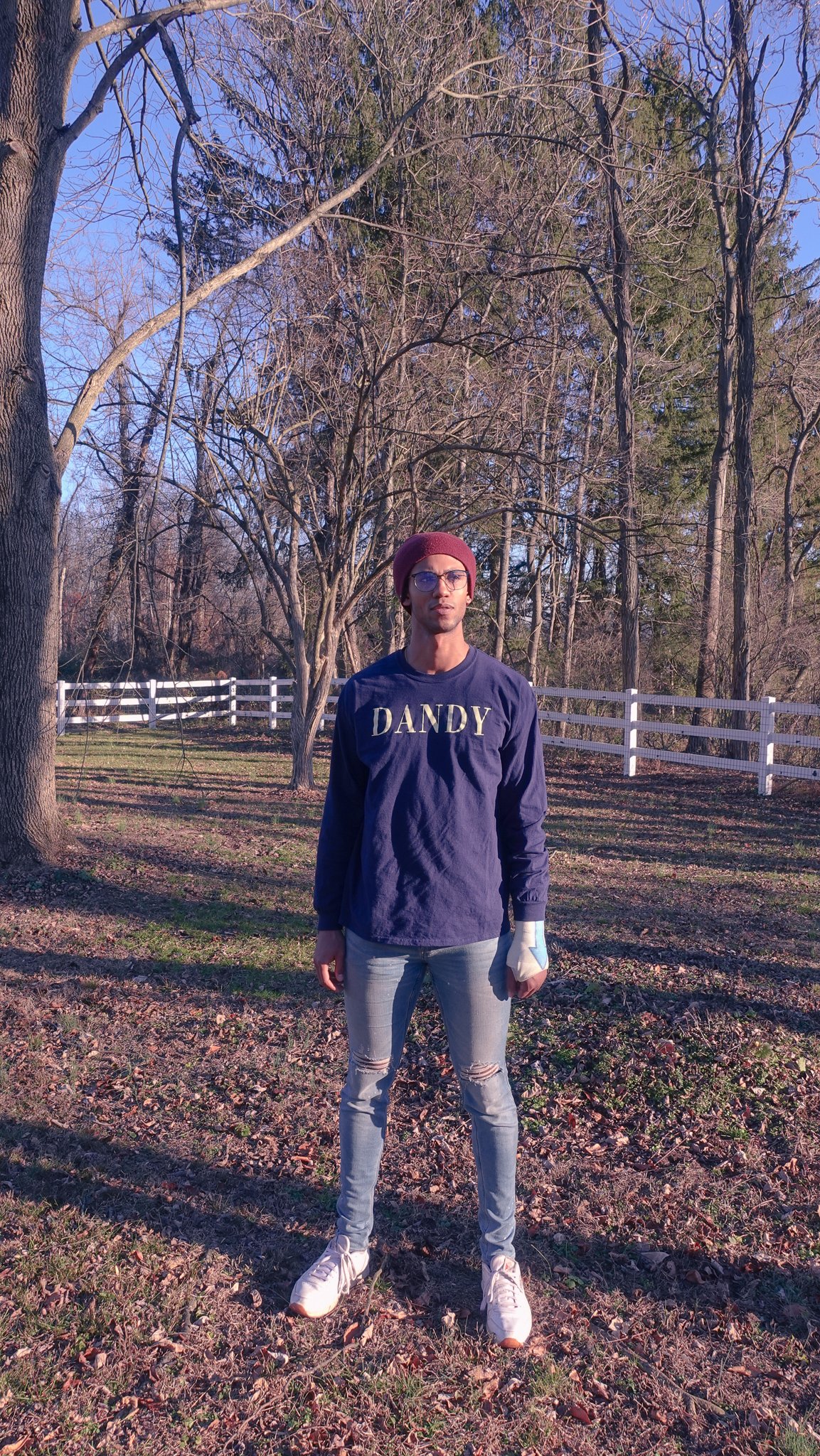 Navy Long sleeve T-shirt with yellow cream Vogue font.
